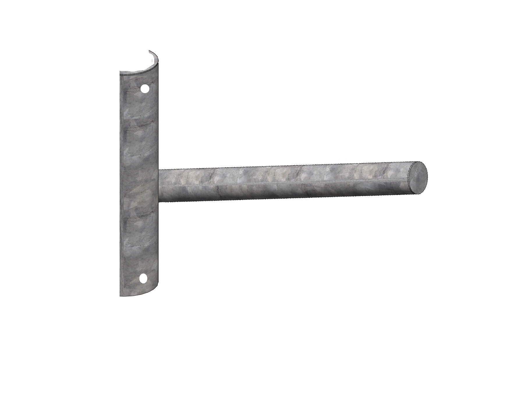 Brazo metálico de 2 metros de largo, recto, con fijación tipo media caña para montaje de luminarias sobre postes metálicos. Su estructura de alta resistencia está diseñada para aplicaciones exigentes en espacios amplios que requieren iluminación extendida.