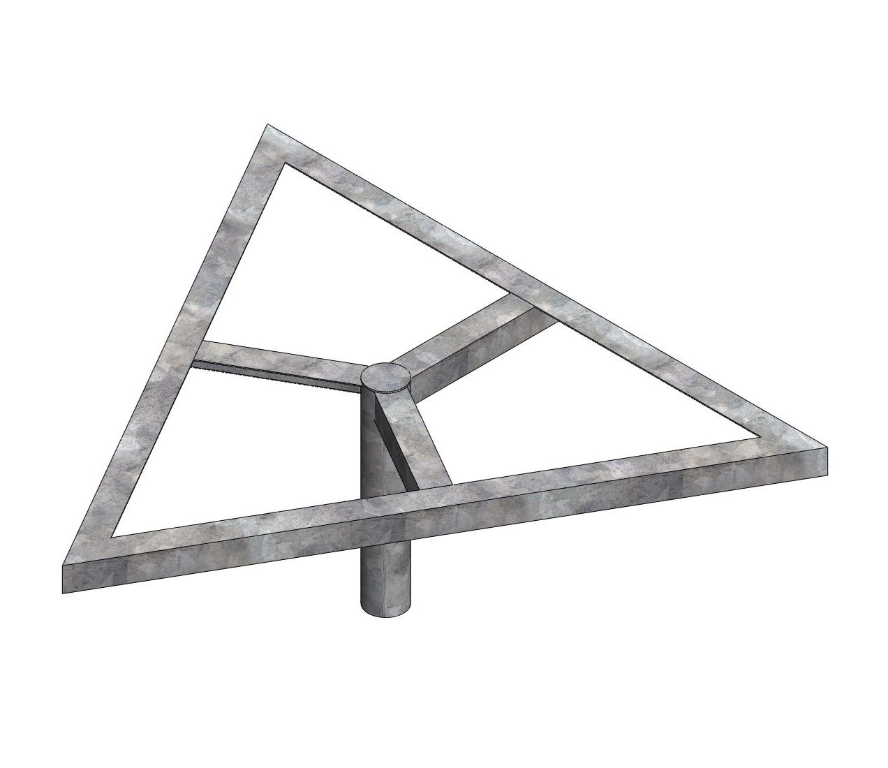 Corona de 3 lados de 50 cm para montaje de luminarias en postes. Fabricado en acero galvanizado en caliente.