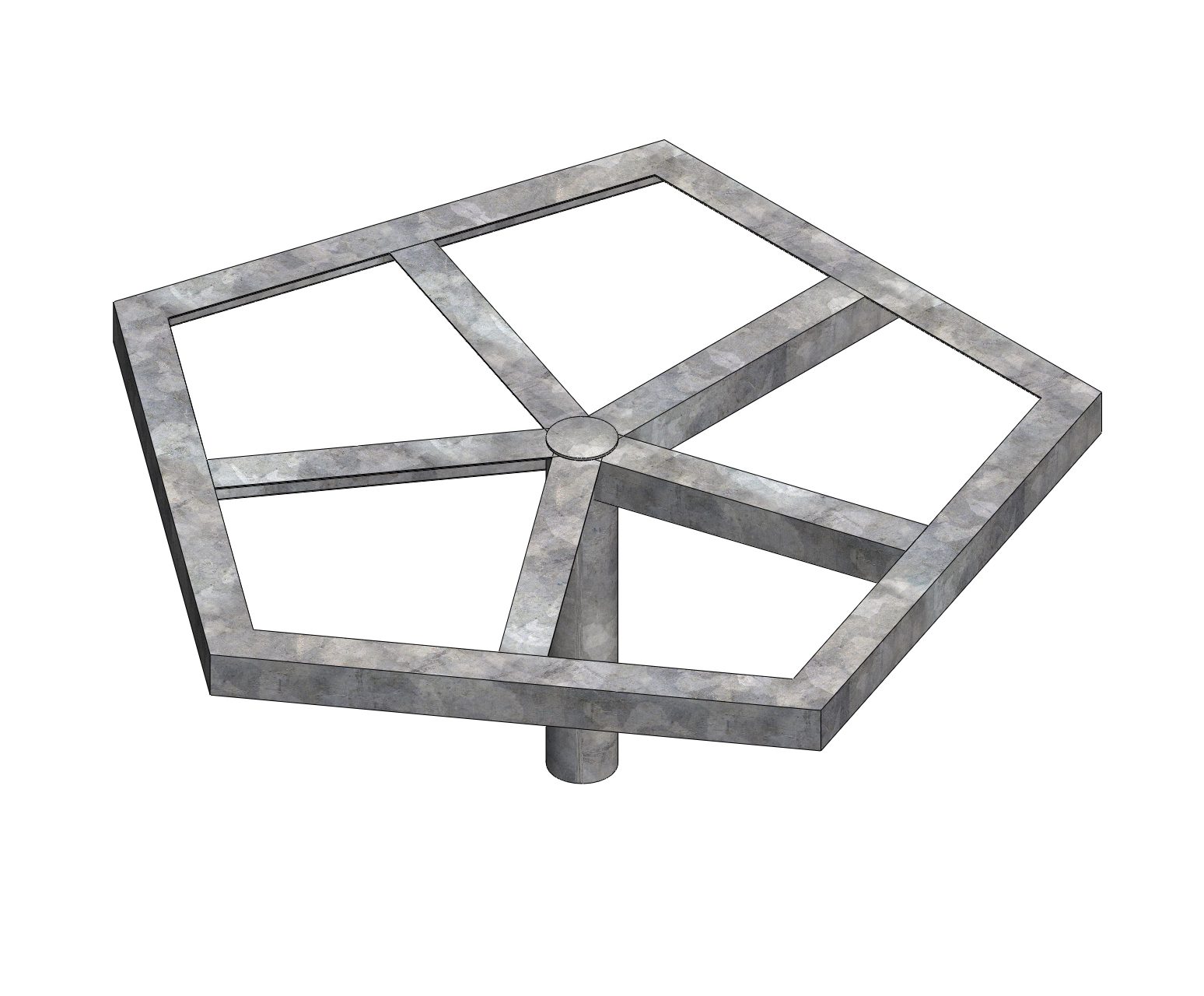 Corona de 5 lados de 50 cm para montaje de luminarias en postes. Fabricado en acero galvanizado en caliente.