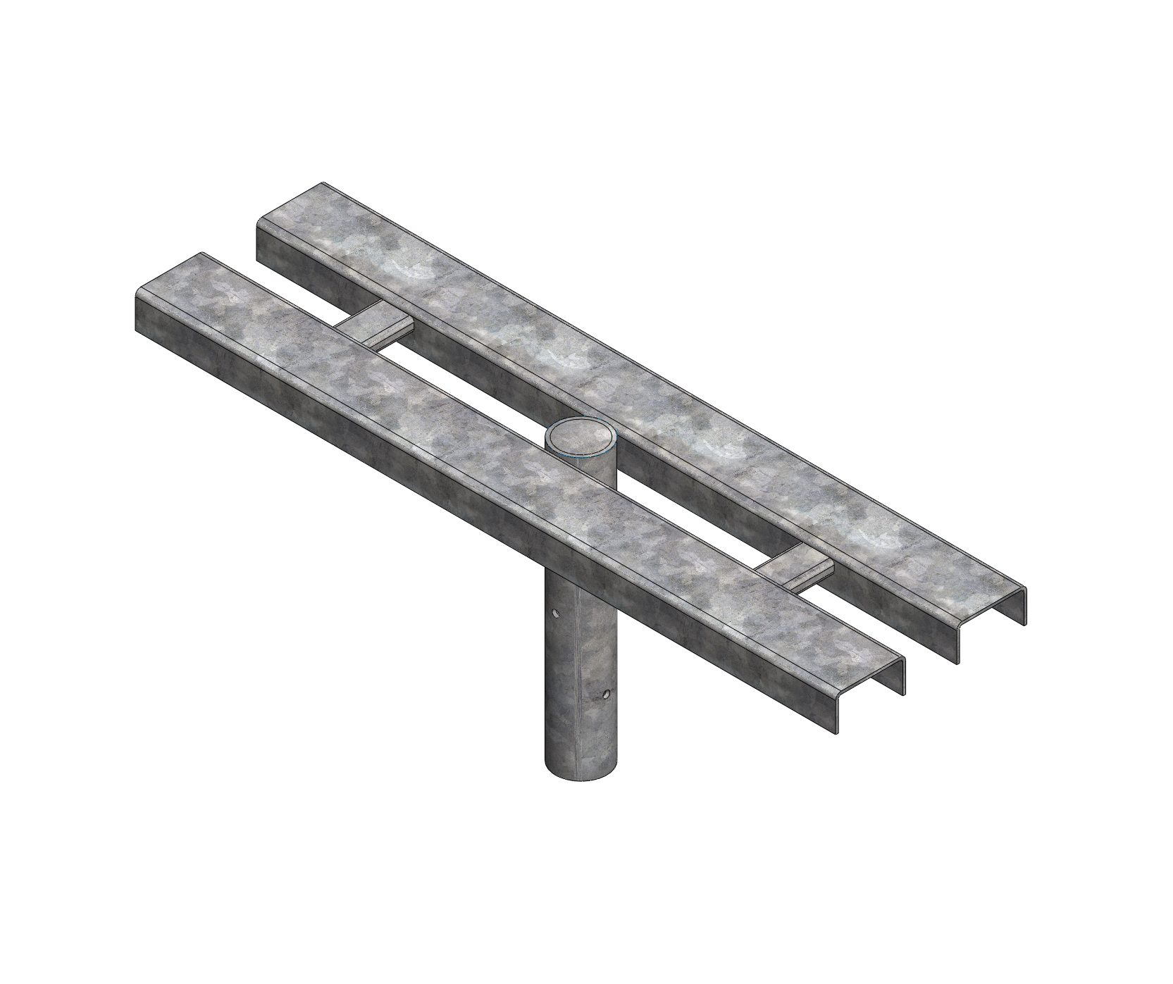 Cruceta doble horizontal de 50 cm para montaje de luminarias en postes. Fabricado en acero galvanizado en caliente.