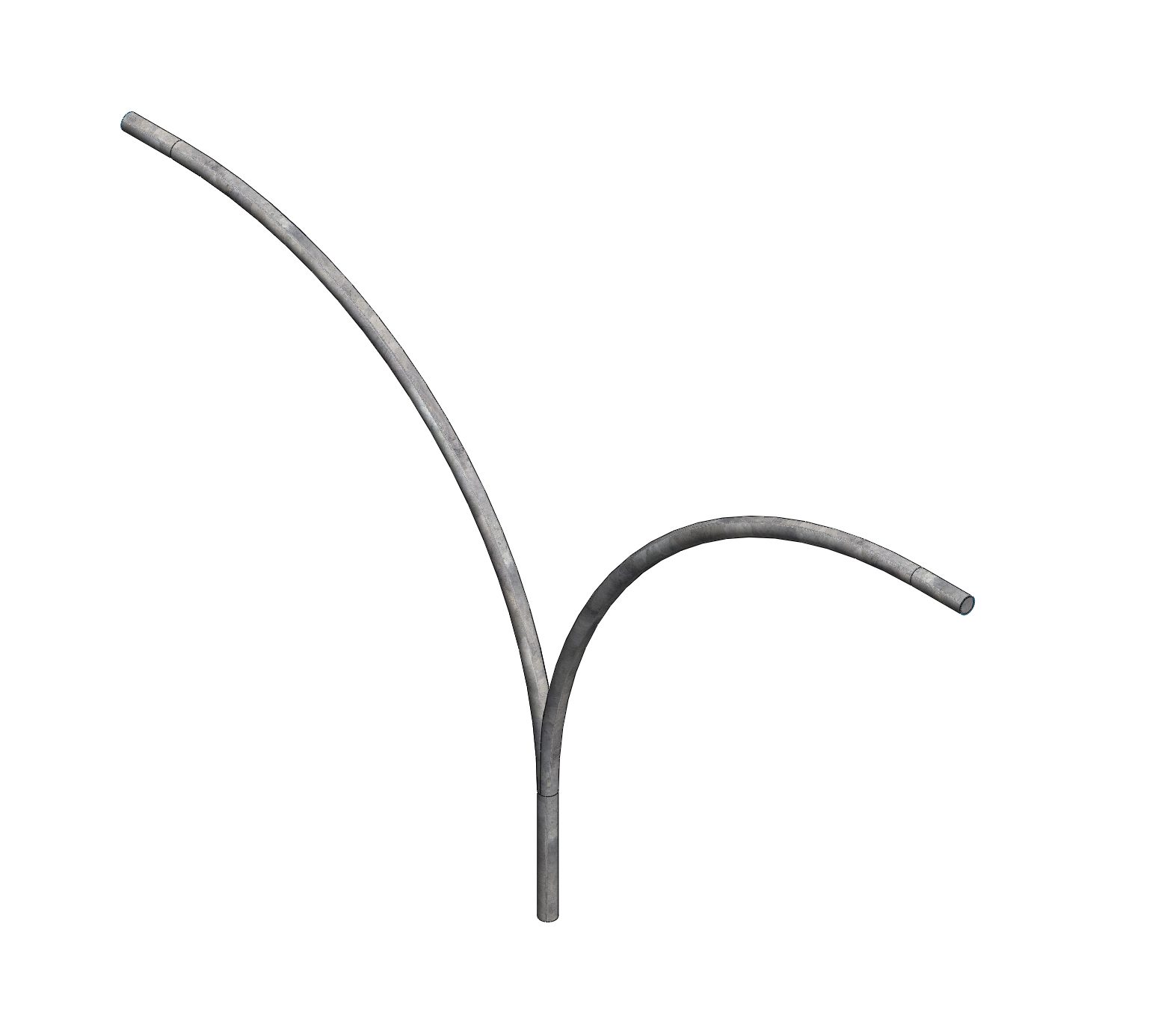 Gancho curvo doble de 1 metro para montaje de 2 luminarias en postes. Fabricado en acero galvanizado en caliente.