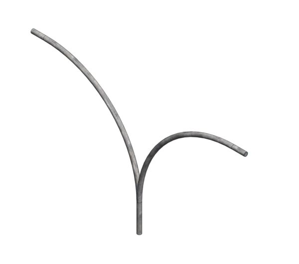 Gancho curvo doble de 1,5 metros para montaje de 2 luminarias en postes. Fabricado en acero galvanizado en caliente.