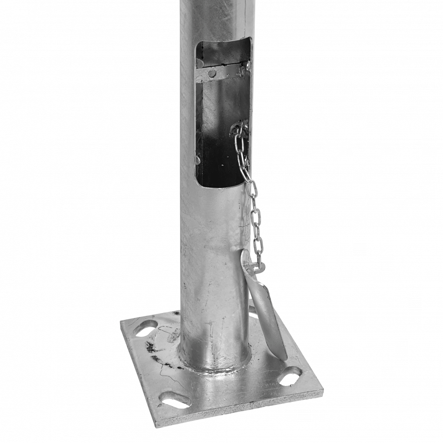Poste cónico de 9 metros para iluminación vial, robusto y resistente al viento. Ideal para avenidas o áreas industriales. Fabricado en acero galvanizado en caliente, cumple con las más altas exigencias técnicas y normativas.